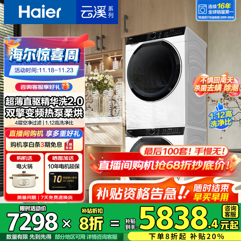 海尔(Haier)云溪3.0系列 579洗烘套装 精华洗洗衣机+热泵烘干机组合10KG 家电国家补贴 579+579套装:直驱精华洗2.0+双擎热泵烘干