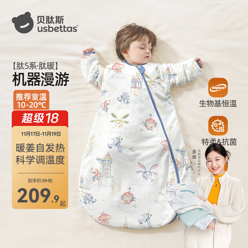 贝肽斯睡袋婴儿春秋恒温新生儿童宝宝睡袋一体式防踢被惊跳包被发热神器 机器漫游【秋冬中厚 10-20°】 S码【适合身高55-70cm】建议年龄0-9个月