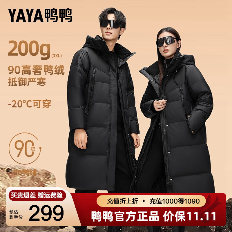 鸭鸭(YAYA)奢金羽绒服男女长款2025冬季新款极寒保暖过膝加厚零下20度外套 黑色 L (建议130-145斤)