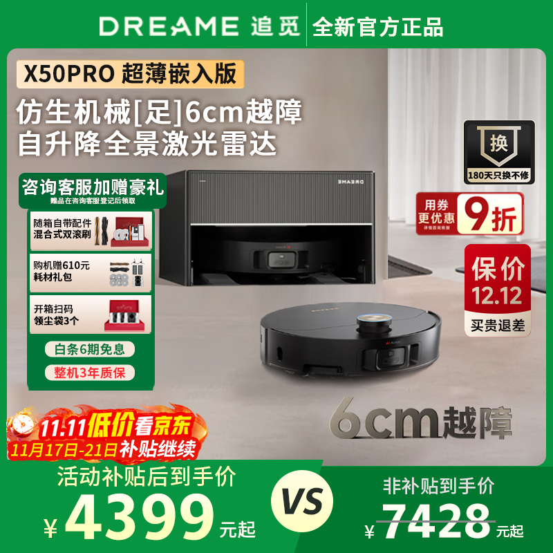 追觅X50Pro 滚筒版 增强版【咨询减千元】扫地机器人扫拖一体双机械臂越障自动集尘清洁上下水拖地机 X50Pro 超薄版【限时9折补贴】