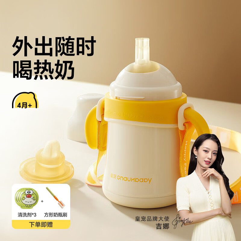 皇宠好吸保温杯婴儿宝宝水杯4个月一岁以上鸭嘴吸管学饮保温奶瓶1 【背带款】吸管保温杯300ml+鸭嘴