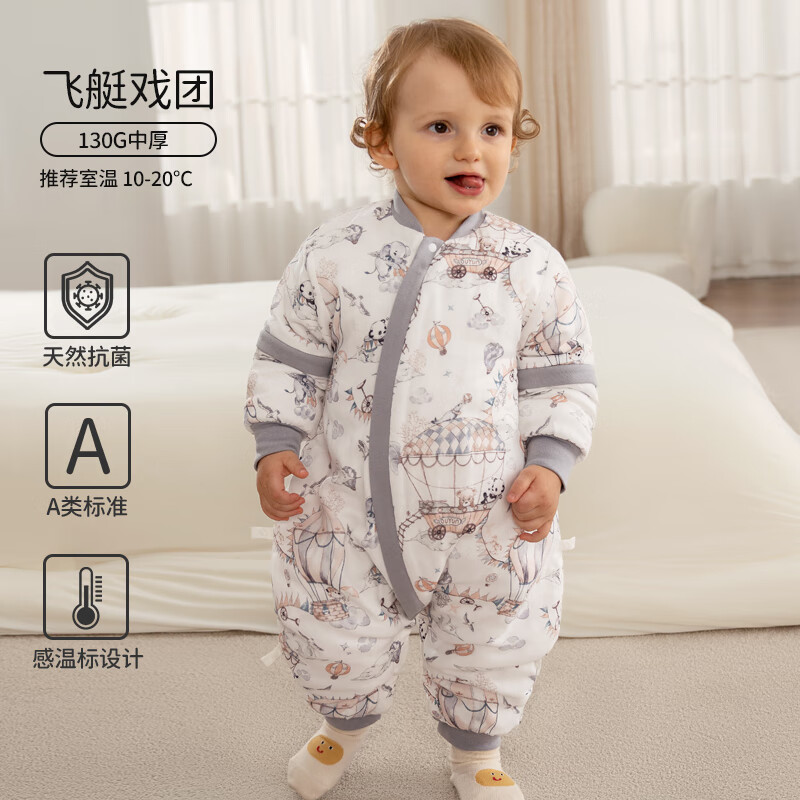 欧孕(OUYUN)【小清心】婴儿睡袋秋薄竹棉纱布防踢被新生儿睡袋 飞艇戏团【厚夹棉】 80建议身高55-80cm(3-18个月)