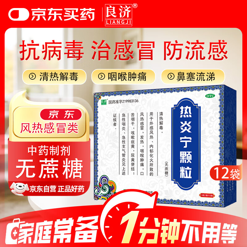 良济 热炎宁颗粒4g*12袋 风热感冒发热咽痛肿痛急性咽炎急性支气管炎 热炎宁合剂