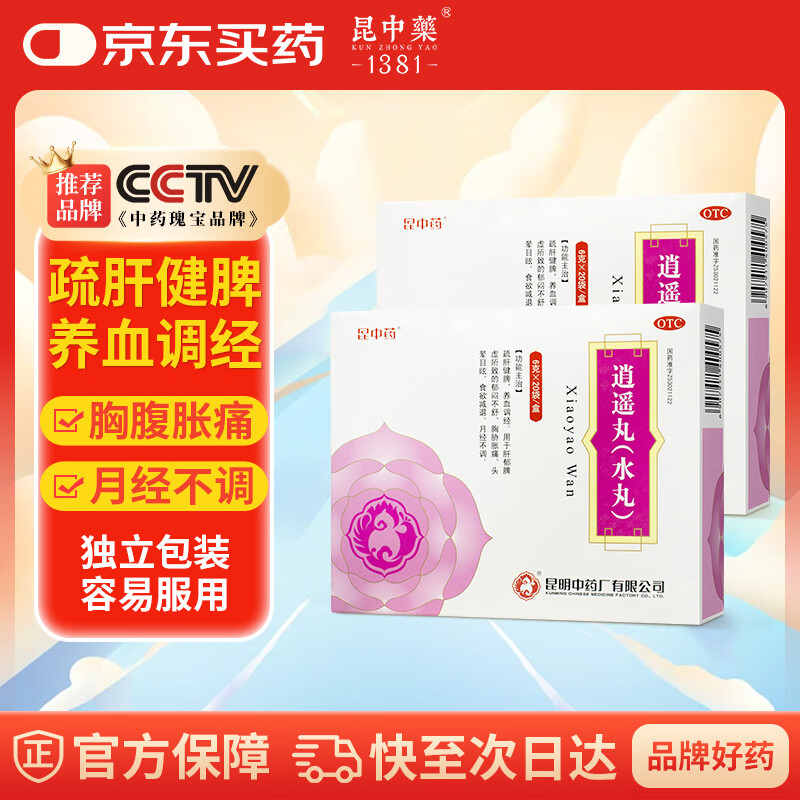 昆中药逍遥丸(水丸)6g*20袋 疏肝健脾养血 调经肝郁脾虚郁闷不舒胸胁胀痛头晕目眩 食欲减退 月经不调