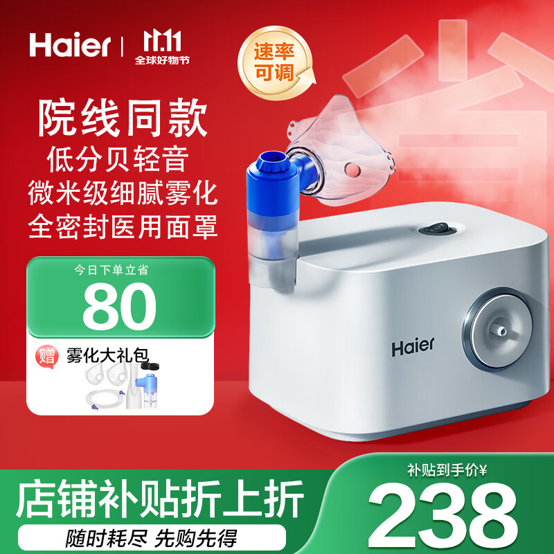 海尔(Haier)雾化器家用儿童医用雾化机成人老人咳嗽哮喘赠面罩双泵压缩W202