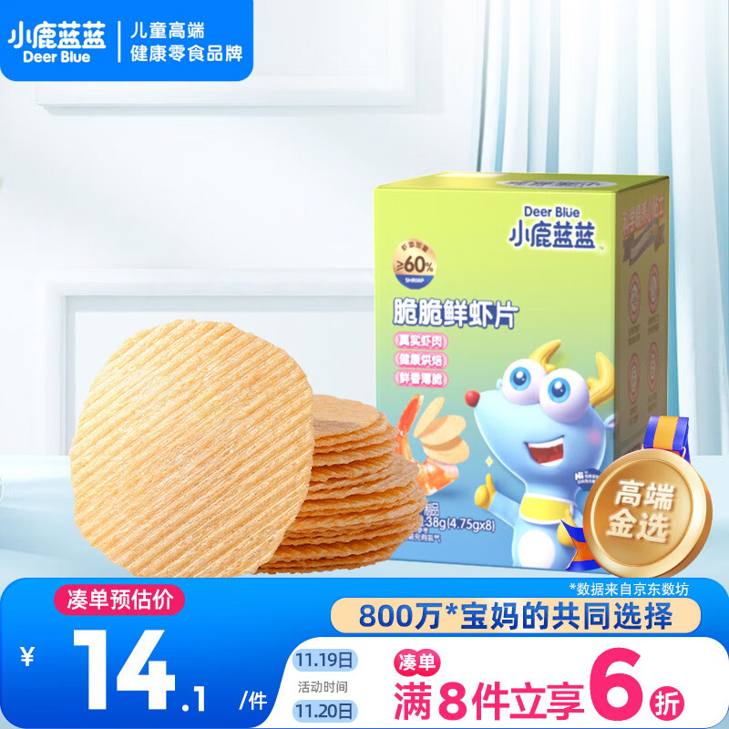 小鹿蓝蓝_宝宝鲜虾片 宝宝儿童零食12月+虾片饼干独立包装 38g