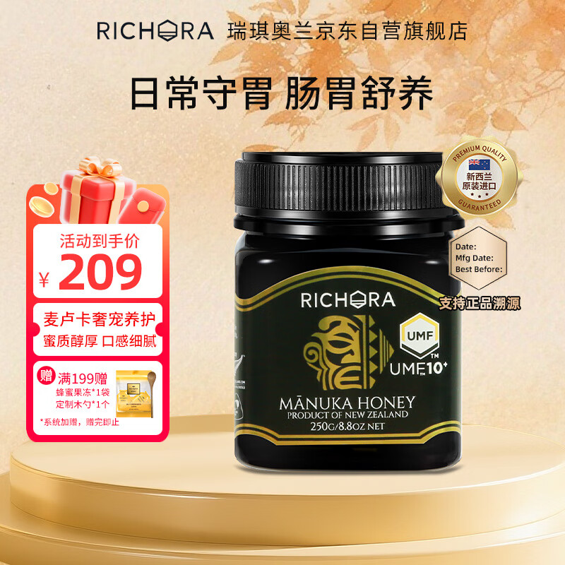 瑞琪奥兰(RICHORA)新西兰原装进口麦卢卡蜂蜜UMF10+250g生日礼物送长辈滋补营养品