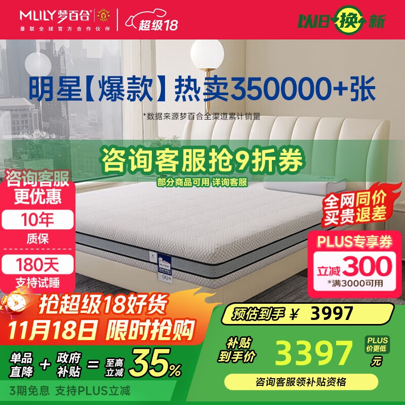 梦百合朗怡零压记忆棉弹簧床垫软硬两用双人席梦思1.8×2米软硬适中