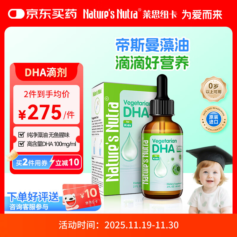 莱思纽卡dha液态滴剂0岁以上婴幼儿新生儿进口海藻油液态滴剂60ml