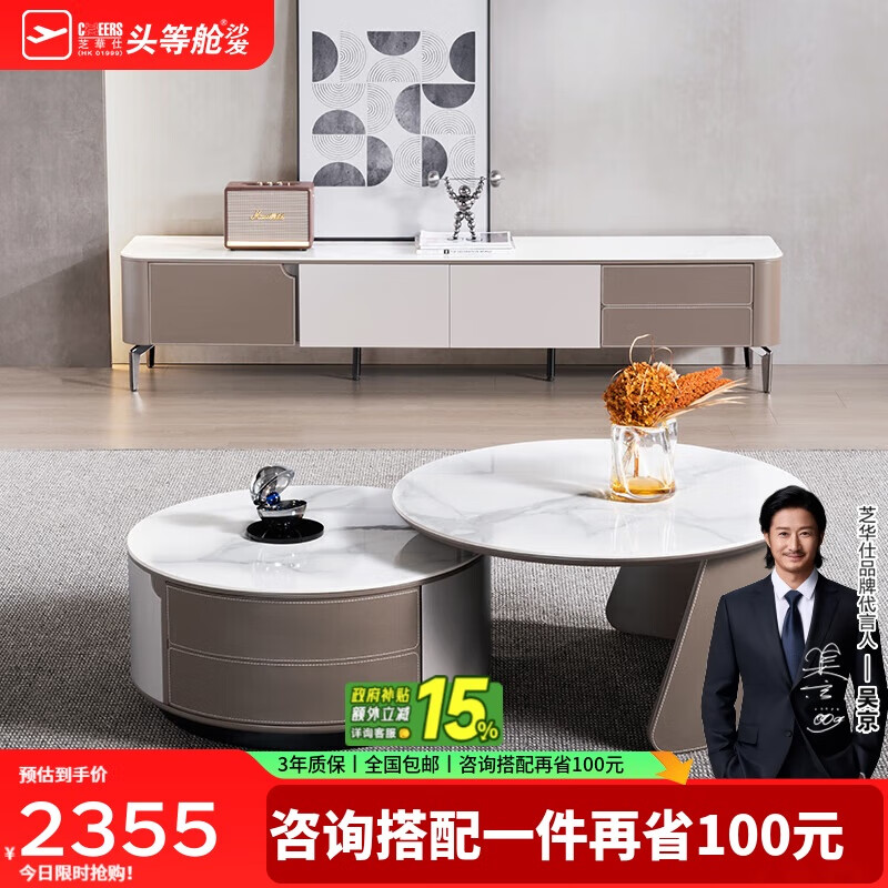 芝华仕(CHEERS)茶几组合芝华士岩板圆桌意式简约可伸缩家具PT066茶几