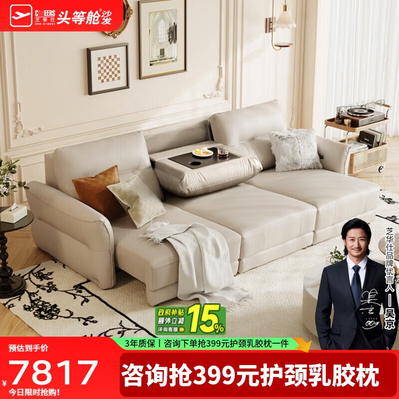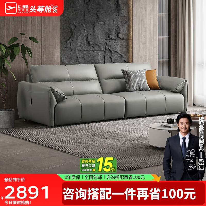 芝华仕(CHEERS)头等舱智能椅贵族皮沙发零靠墙电动功能沙发床芝华士30286白2.86m