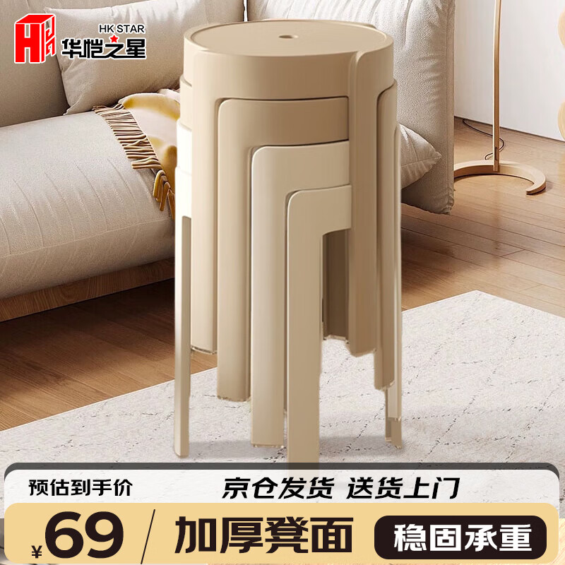 华恺之星凳子家用塑料凳加厚圆凳高凳板凳餐椅餐凳可叠放凳YK081驼2白2