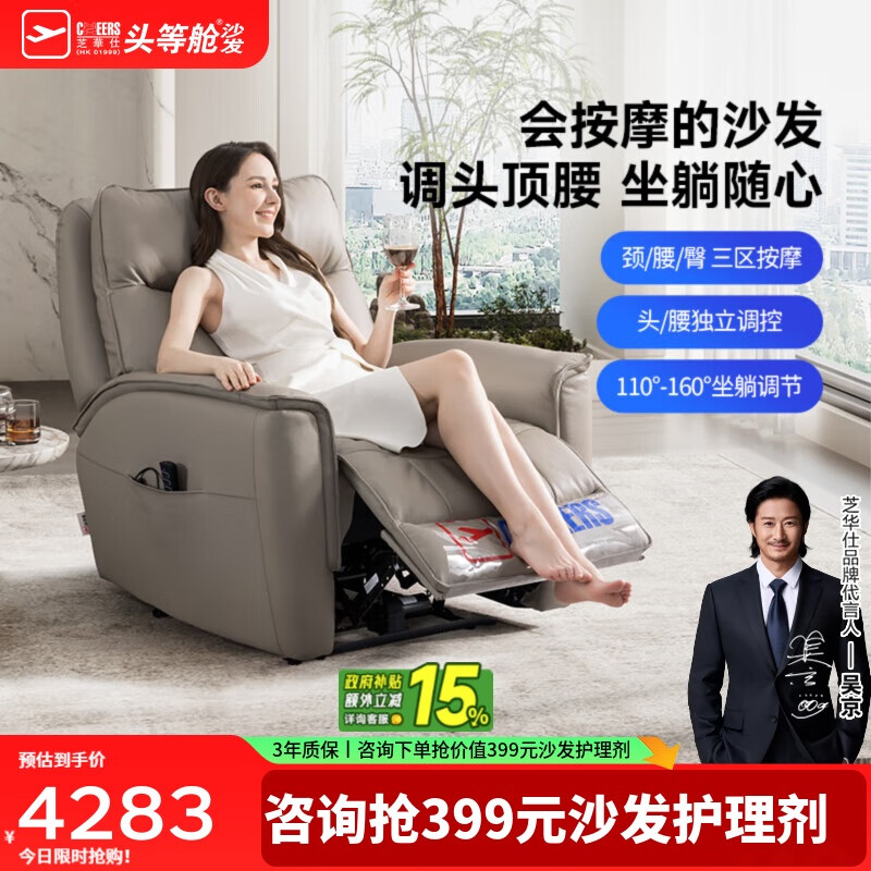 芝华仕(CHEERS)头等舱真皮单人沙发现代简约电动功能按摩椅芝华士30751