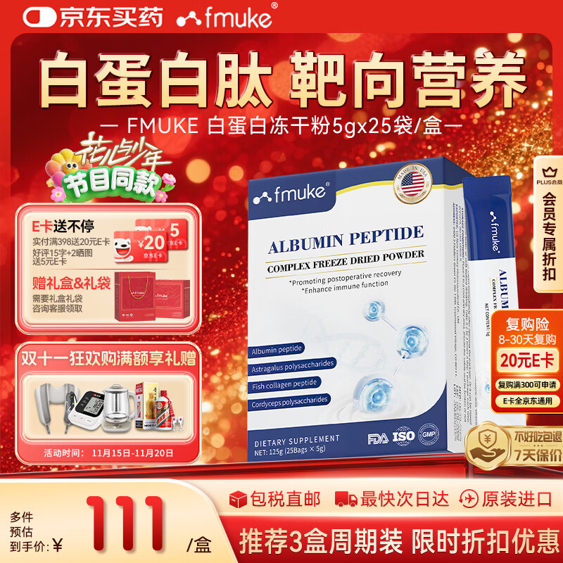 FMUKE白蛋白肽冻干粉氨基酸增强免疫力抵抗力老年人术后营养品5g*25袋