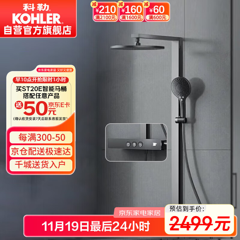 科勒(KOHLER)数显恒温淋浴花洒套装雨神37963大置物台巨幕顶喷 暮光灰按键控制