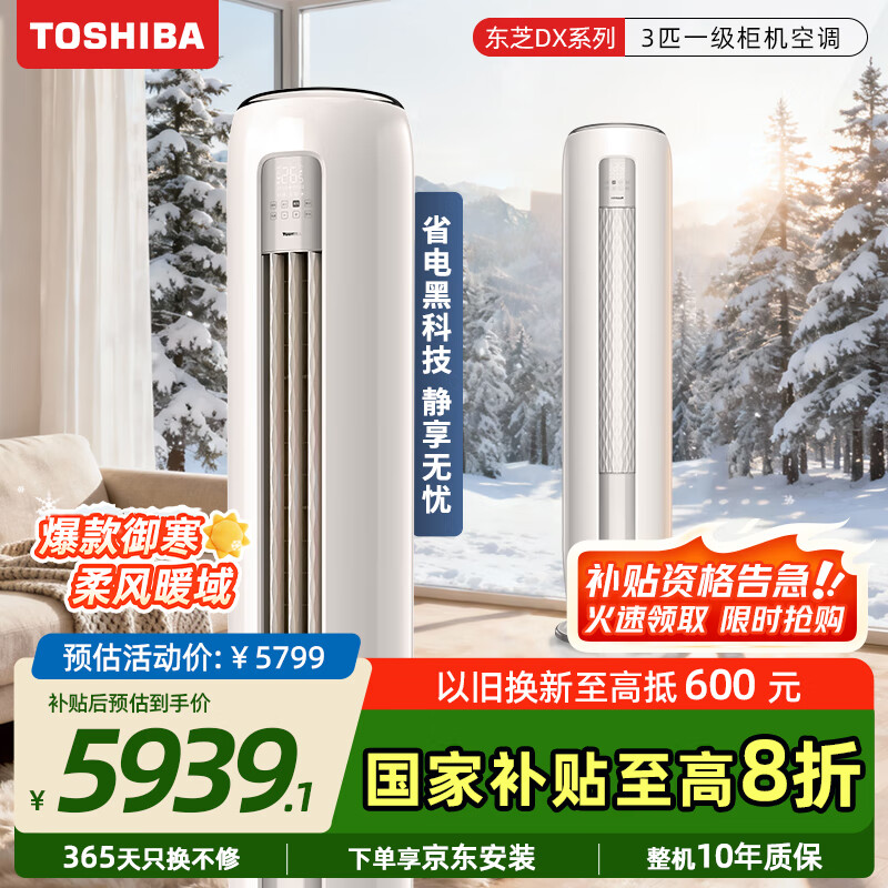 东芝(TOSHIBA)空调 大3匹 新1级能效 省电变频冷暖客厅 立式柜机超远舒适风RAS-25TFVG1G4-C RAS-25TBVG1G4-C