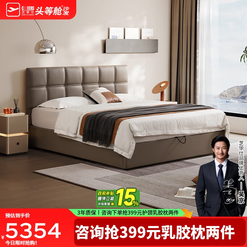 芝华仕五星皮床主卧双人床平移储物床真皮意式轻奢床带床垫C631咖1.5m