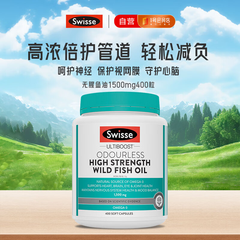 斯维诗(SWISSE)高浓度深海无腥鱼油1500mg胶囊含omega-3 DHA+EPA 400粒护心血管