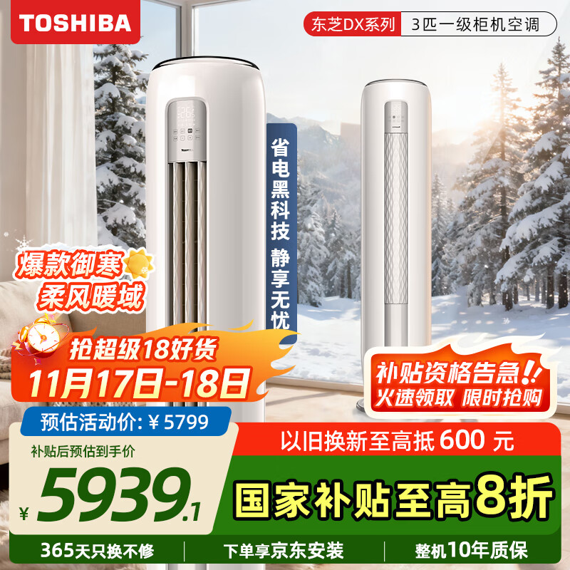 东芝(TOSHIBA)空调 大3匹 新1级能效 省电变频冷暖客厅 立式柜机超远舒适风RAS-25TFVG1G4-C RAS-25TBVG1G4-C