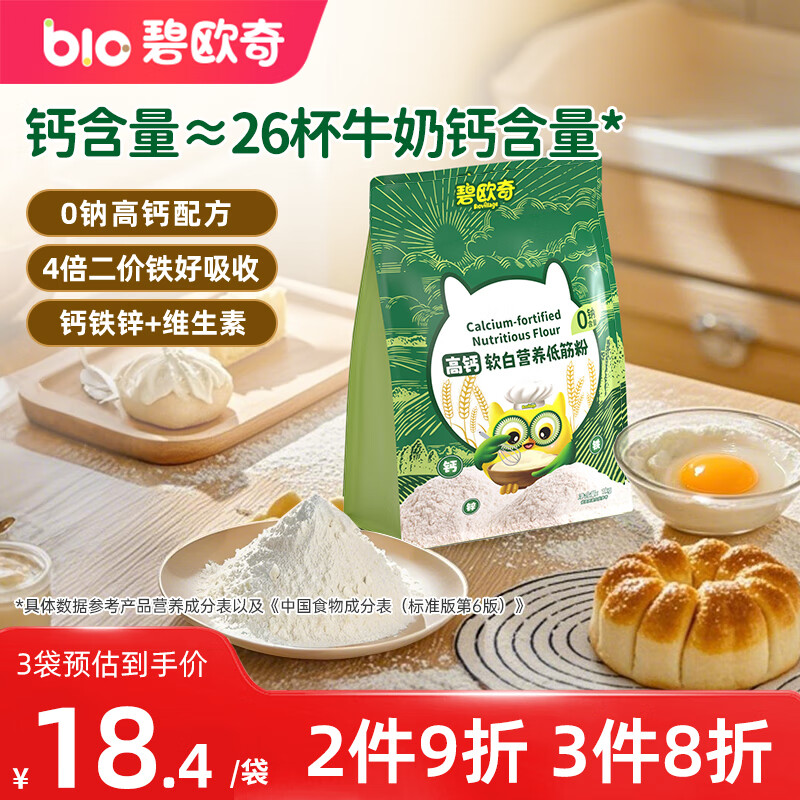 碧欧奇高钙软白营养低筋面粉1000g 儿童小麦面粉蛋糕松饼送婴幼儿食谱