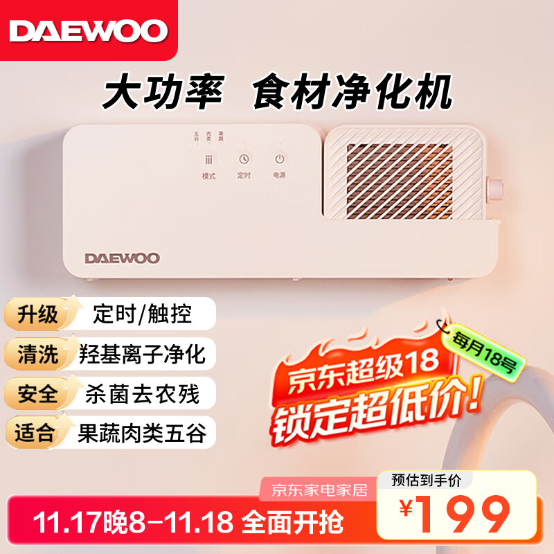 大宇果蔬清洗机 大功率果蔬清洗器蔬菜清洗机果蔬净化器家用壁挂式多功能洗菜机食材净化机洗菜神器QX3 白色QX3