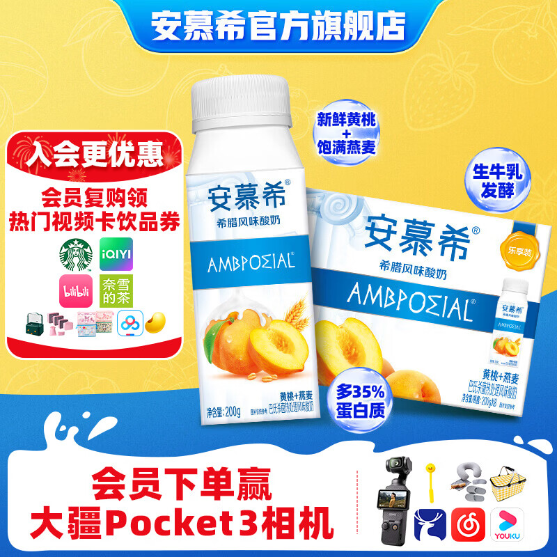 安慕希伊利黄桃燕麦风味酸奶常温牛奶乳品整箱营养早餐乐享装1月 黄桃燕麦200gx8盒