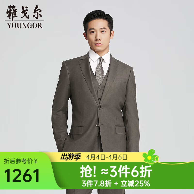 雅戈尔(YOUNGOR)西服男292款套西上衣绵羊毛全羊毛经典新版型商场同款 咖啡YOTN217292WIY上衣 L 175/100A
