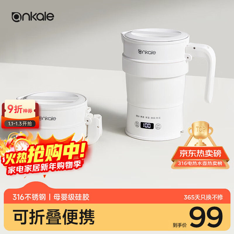 ankale可折叠便携式电热水壶 食品级316不锈钢母婴级硅胶 出差旅行户外全自动恒温保温烧水壶 AJL-SH0702
