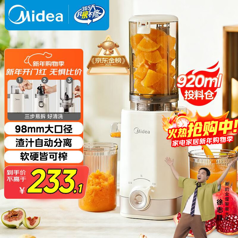 美的(Midea)NFC纯原汁机橙汁机冰淇淋机多功能家用电动榨汁机全自动果蔬机渣汁分离MJ-ZZ12W1-029