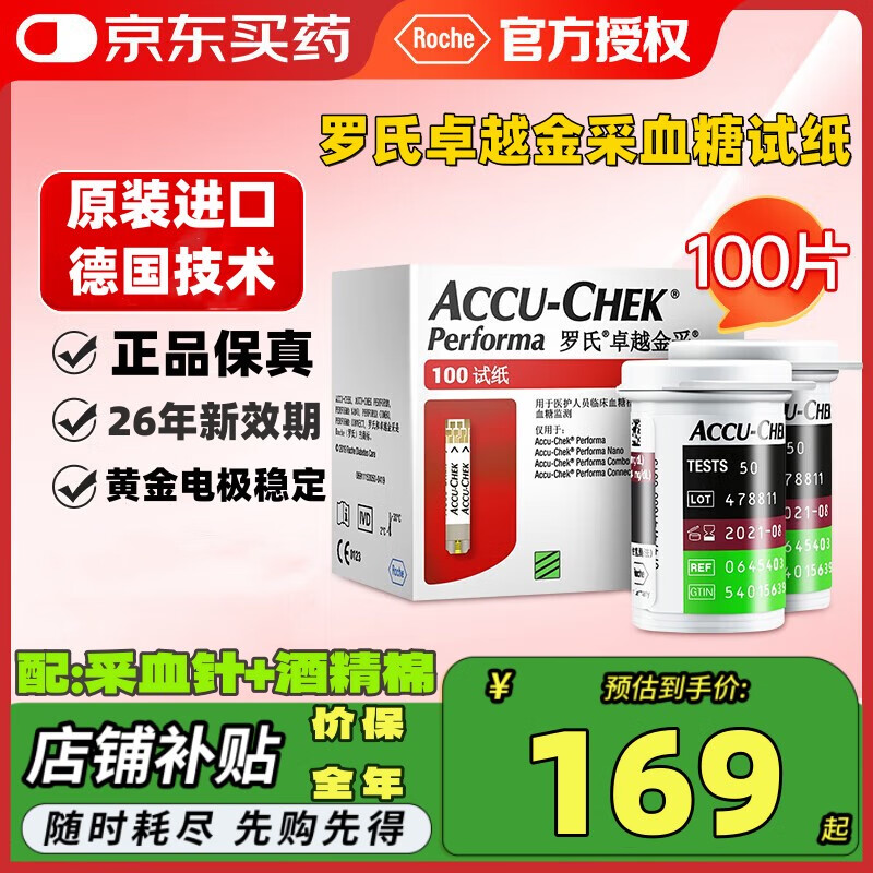 罗氏血糖仪试纸家用卓越精采型金采血糖试纸智航觅血糖检测(白条免息) 卓越试纸100片(26年新效期顺丰包邮)+针+棉