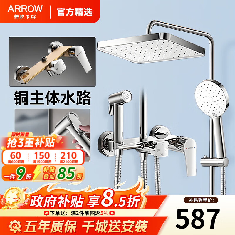 箭牌(ARROW)政府补贴淋浴花洒套装增压全铜花洒全套卫浴浴室沐浴淋浴喷头花洒 【店长力荐】四功能增压仿生雨淋