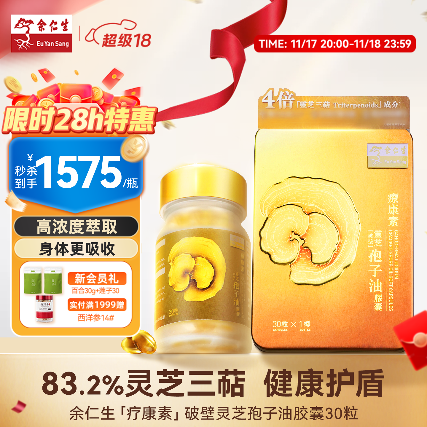 余仁生疗康素破壁灵芝孢子油软胶囊30粒孢子粉精华萃取营养滋补保税直发