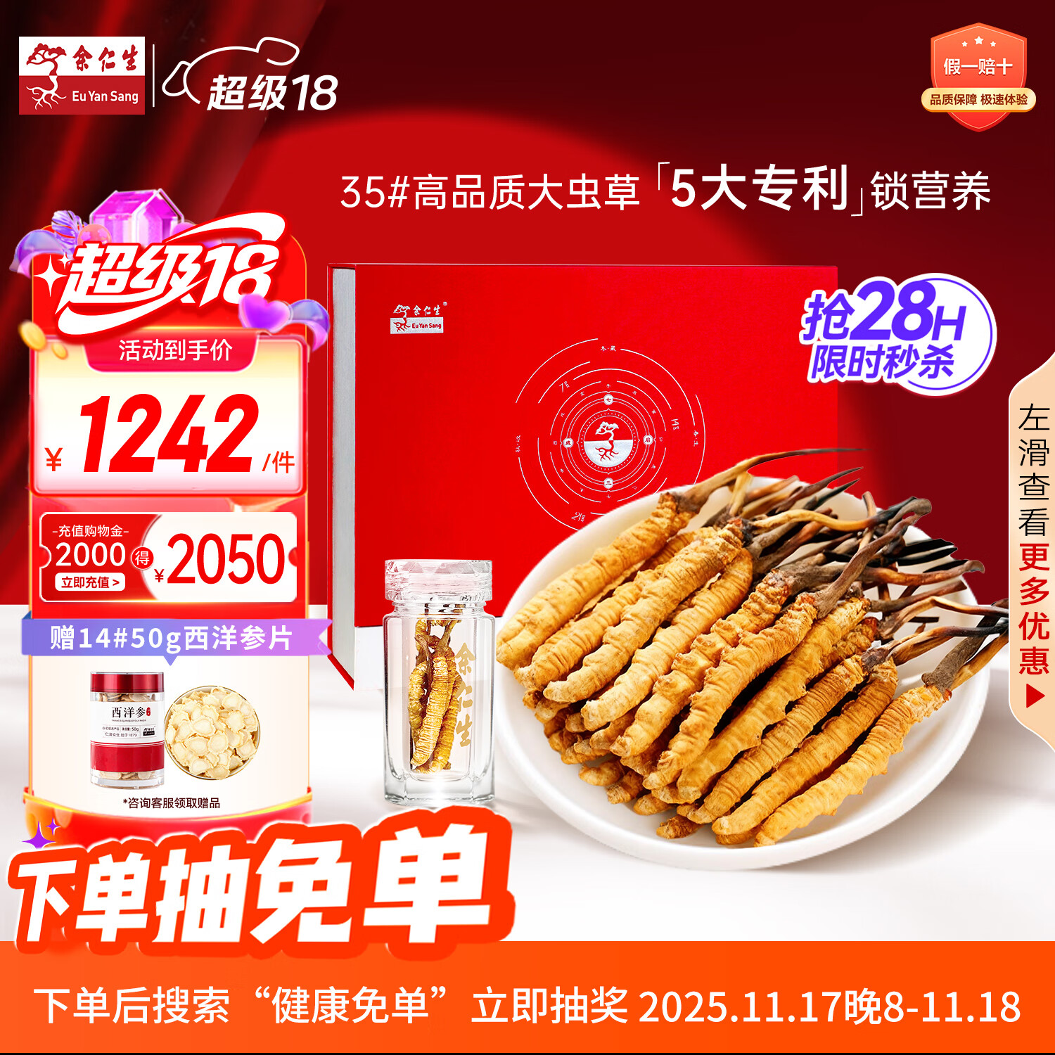 余仁生冬虫夏草 干虫草礼盒约3-4条/克 10g 约35根 节日送礼 送领导长辈