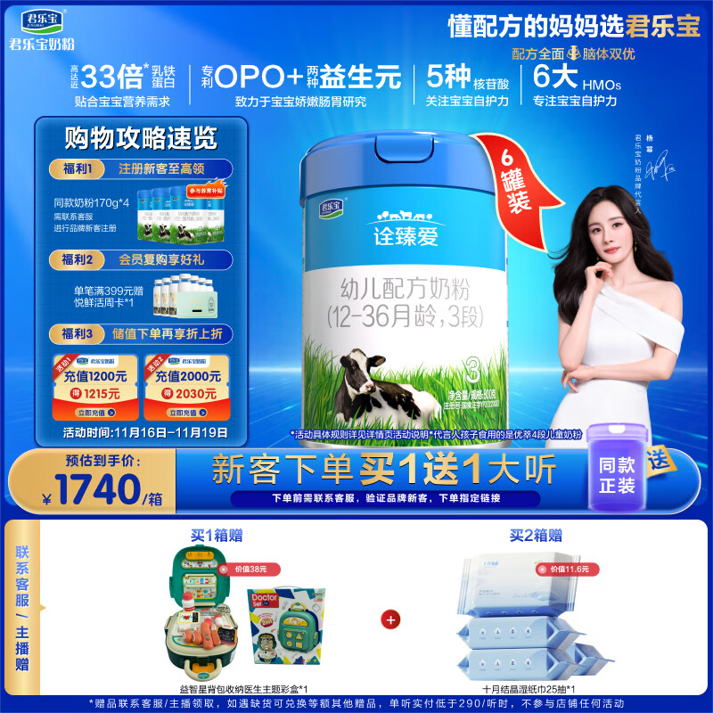 君乐宝(JUNLEBAO) 诠臻爱3段幼儿配方奶粉(12-36月龄) 800g*6听装