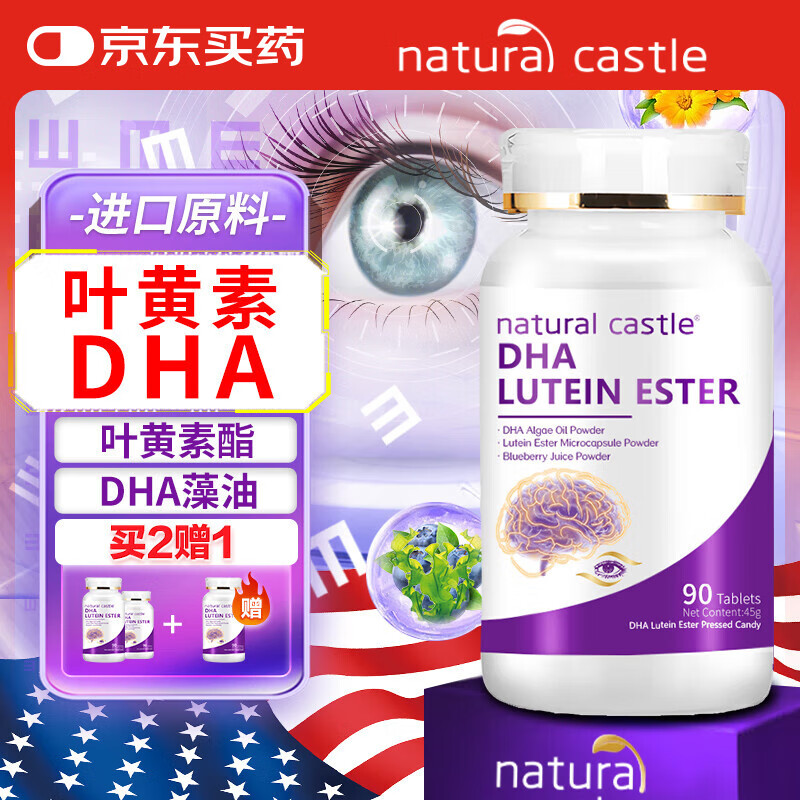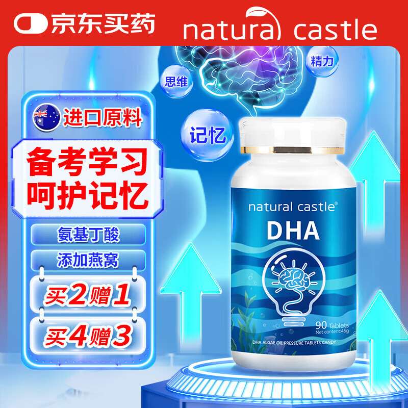Natural Castledha 90片/瓶 学生儿童青少年成人小初高中生呵护记忆力专注力