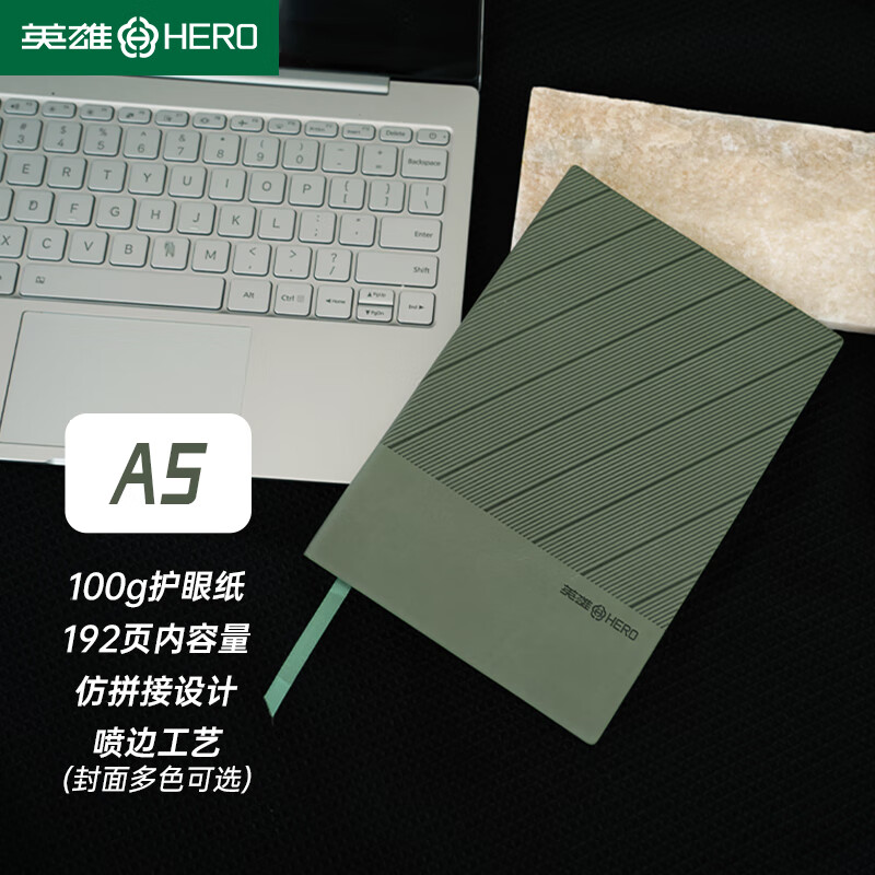 英雄(HERO)A5商务笔记本子加厚外硬壳软皮面简约高档颜值礼品开会议随身办公文具用品横线记事可撕日记本册夹