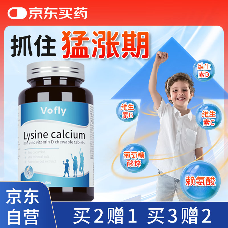 VOFLY澳洲赖氨酸儿童钙片青少年成长发育钙锌维生素D
