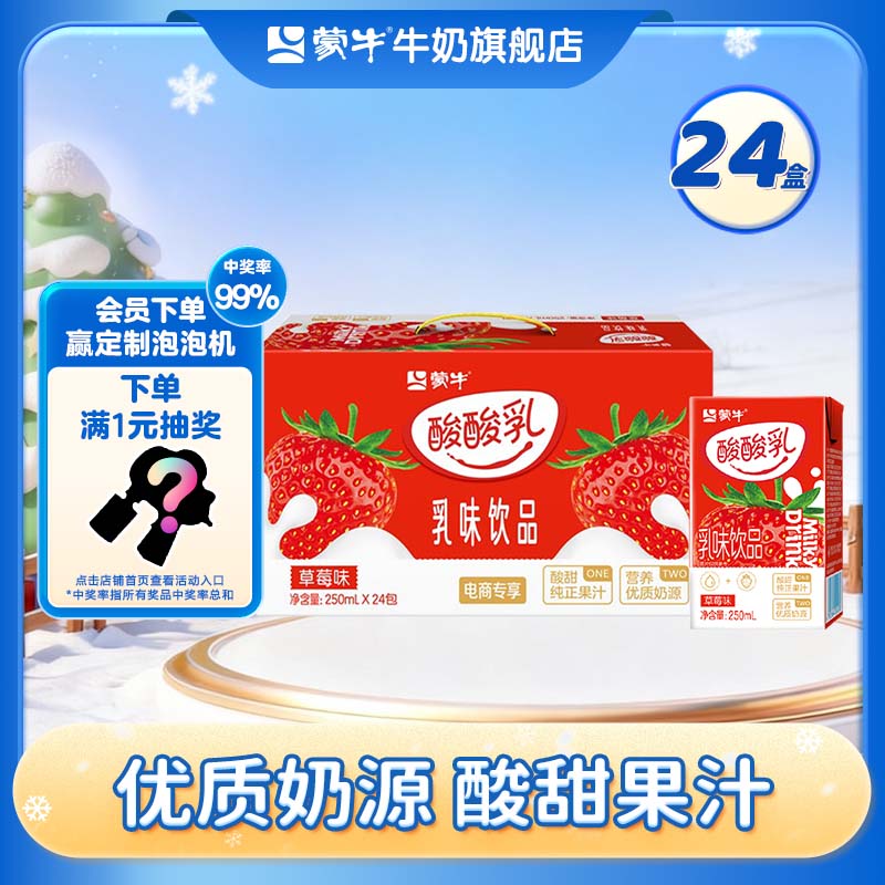 蒙牛 酸酸乳乳味饮品礼盒装 酸甜美味(部分8月产) 【草莓味】250ml×24盒