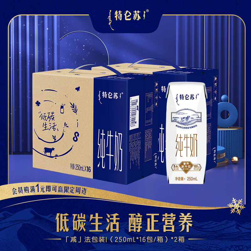 特仑苏纯牛奶250ml*16瓶/箱 2箱装 送礼佳品 9-11月产