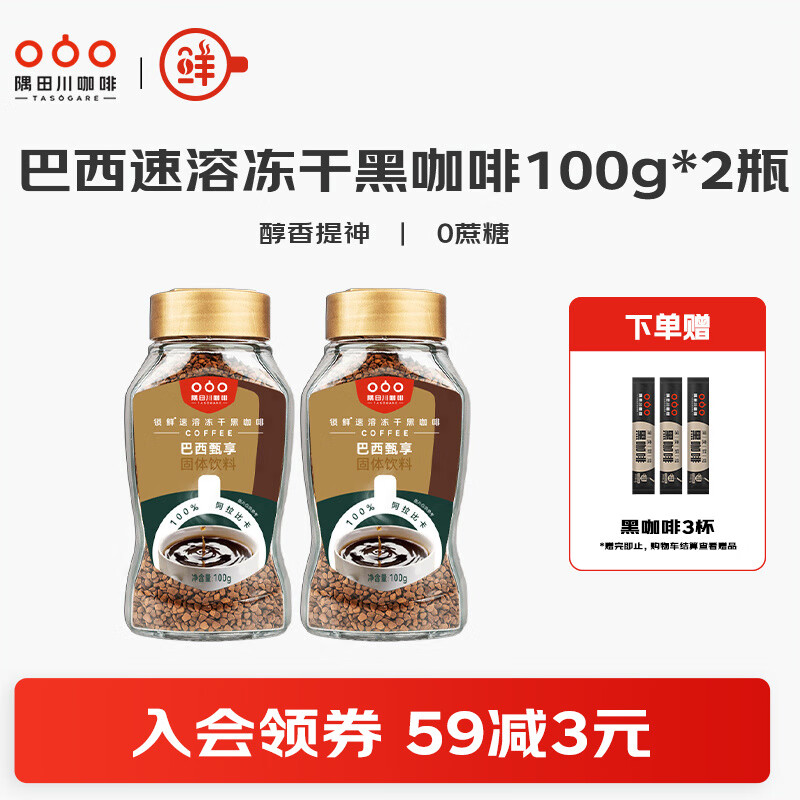 隅田川进口意式黄金速溶冻干纯黑咖啡粉阿拉比卡豆冰美式0蔗糖添加100g 冻干100g*2瓶