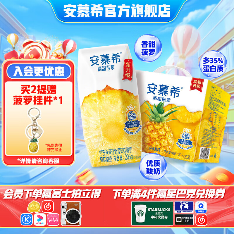 伊利安慕希清甜菠萝味常温酸奶整箱生牛乳牛奶乳品儿童早餐礼品礼盒装 菠萝酸奶205gx12盒x1箱9月产