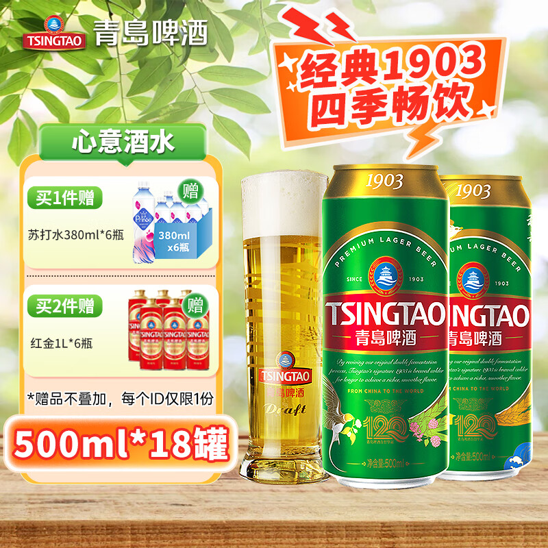 青岛啤酒(TsingTao)1903系列大罐经典啤酒四季罐整箱畅饮 500mL 18罐 整箱装