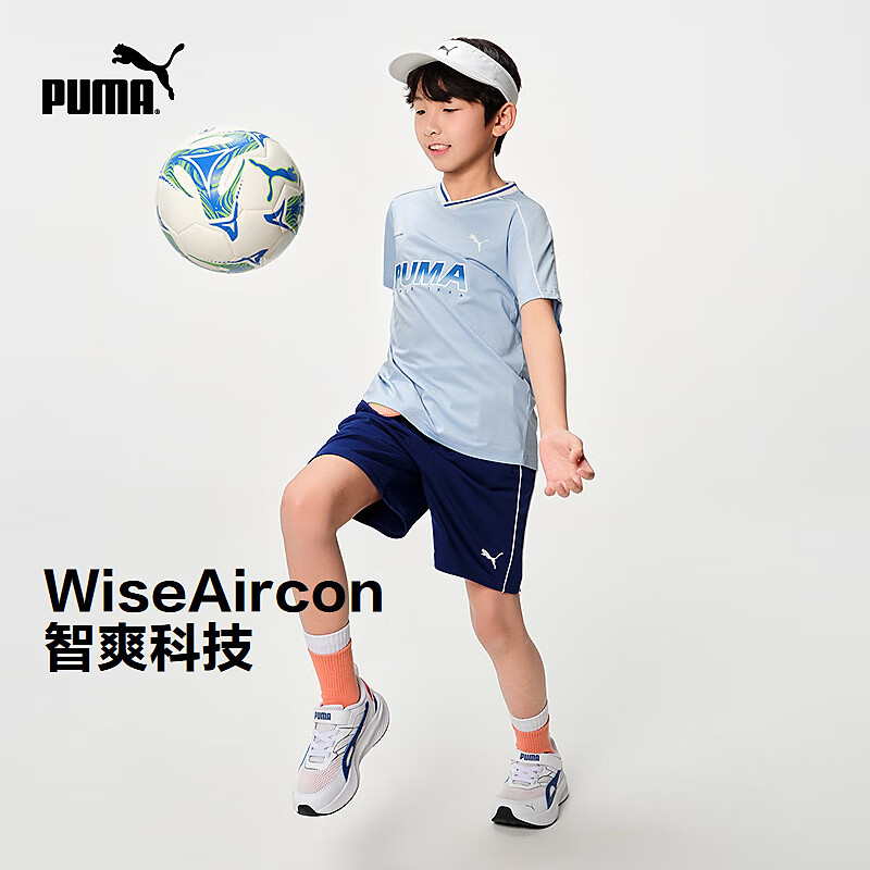 PUMA彪马官方正品 新款儿童夏季短袖套装吸湿速干运动套装 冰蓝80901 165