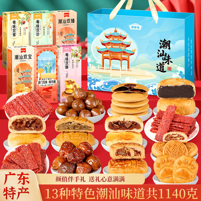 思香逢广东潮汕特产传统中式广式糕点潮州汕头零食小吃年货春节伴手礼盒 潮汕味道(6件13款1140克)