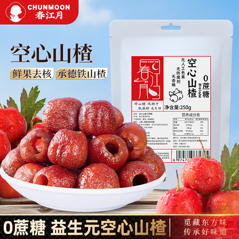 春江月空心山楂干独立装无添加剂山楂制品蜜饯果干无核山楂球孕妇零食 0蔗糖款【250g*1袋】尝鲜装