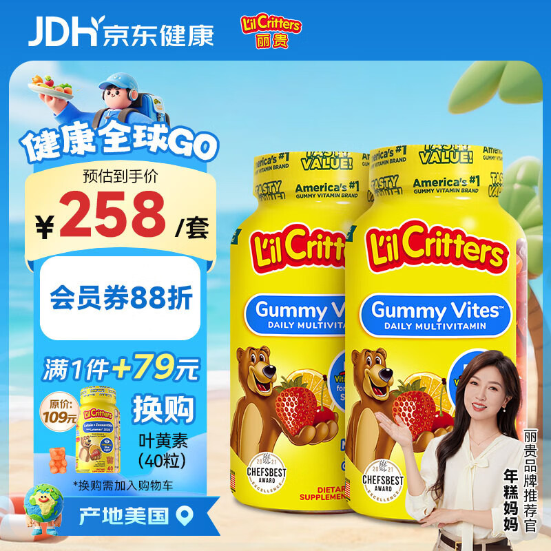 小熊糖丽贵小熊糖lilcritters婴幼儿童复合维生素营养软糖 叶黄素多维190*2瓶