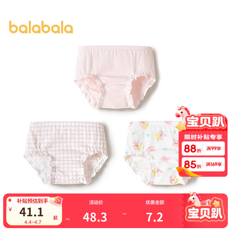 巴拉巴拉宝宝面包裤女童三角短裤婴儿内裤戒尿不湿a类亲肤三条装 白红色调00316 3条 100