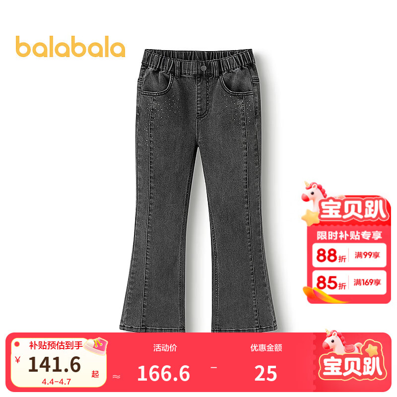 巴拉巴拉【商场同款】儿童牛仔裤女童喇叭裤秋装新款长裤舒适 牛仔黑98301 140