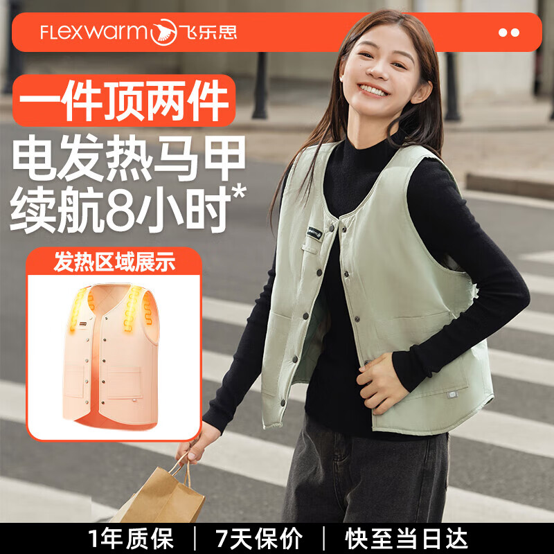 飞乐思电热马甲冬季保暖加热保暖棉衣温控智能充电背心马夹男女-浅绿L码