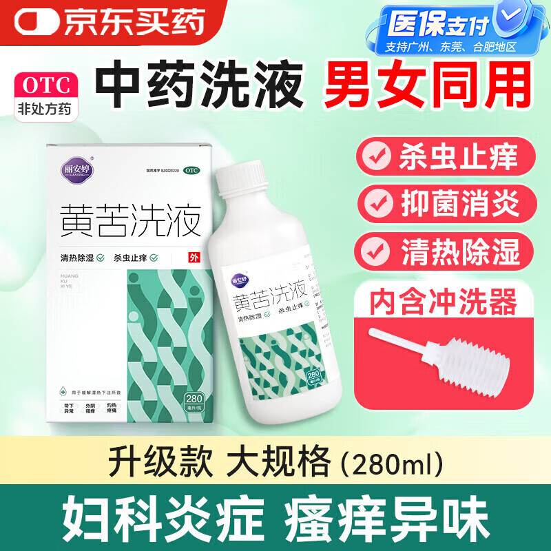 丽安婷 黄苦洗液280ml*1盒 阴道炎妇科用药外阴搔痒异味红肿痛止痒杀菌消炎症洗剂私处护理洗液男女通用